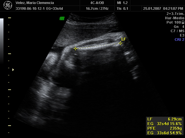 4) Este es mi fémur izquierdo, tiene 6.29 cms de largo.